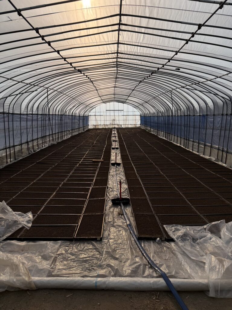 2026 種蒔き開始でございます 2026年4月17日 最終更新日時 : 2026年4月17日 user 本日より種蒔き開始しました。まずは吟おうみ餅コシヒカリ ハウスに苗箱を人力で並べる作業正直辛いですが😂楽しくお喋りしながら励んでおります。 今年から新たに散水機を設置しました。苗の成長が楽しみです♪